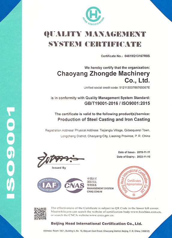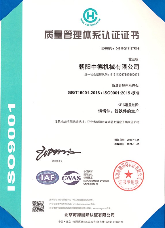 朝陽(yáng)中德機(jī)械有限公司座落于有著“東方佛都”之稱(chēng)的三燕古都,歷史文化名城——朝陽(yáng),具體位置朝陽(yáng)市龍城區(qū)七道泉子鎮(zhèn)鐵匠爐村。公司創(chuàng)建于2006年5月是一家以鑄鋼件、鑄鐵件,集按用途設(shè)計(jì)、開(kāi)發(fā)、生產(chǎn)、銷(xiāo)售于一體的,為機(jī)械設(shè)備配套的生產(chǎn)型公司。公司注冊(cè)資金1000萬(wàn),固定資產(chǎn)投資1480萬(wàn)元,主要生產(chǎn)設(shè)備GGW-5T,GGW-10T,GGW-10T中頻感應(yīng)爐;GDY-13C高溫電阻窯、GDY-9.5C電阻窯,M4000型直讀光譜儀,DP-3985型硬度測(cè)試儀,倒置式金相顯微鏡、拉伸試驗(yàn)機(jī)、超生波探傷儀,檢測(cè)手段完備。
